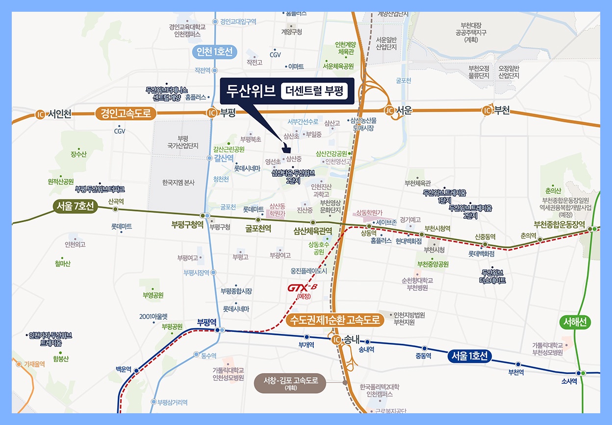두산위브 더 센트럴 부평은 서울 및 수도권으로의 접근성이 매우 뛰어납니다.