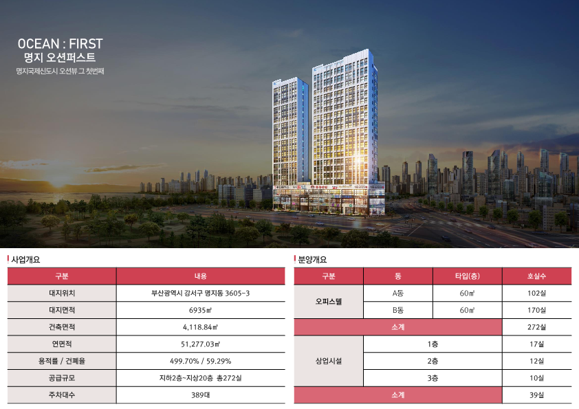 부산 강서부 명지국제신도시 오션퍼스트 오피스텔 분양 안내