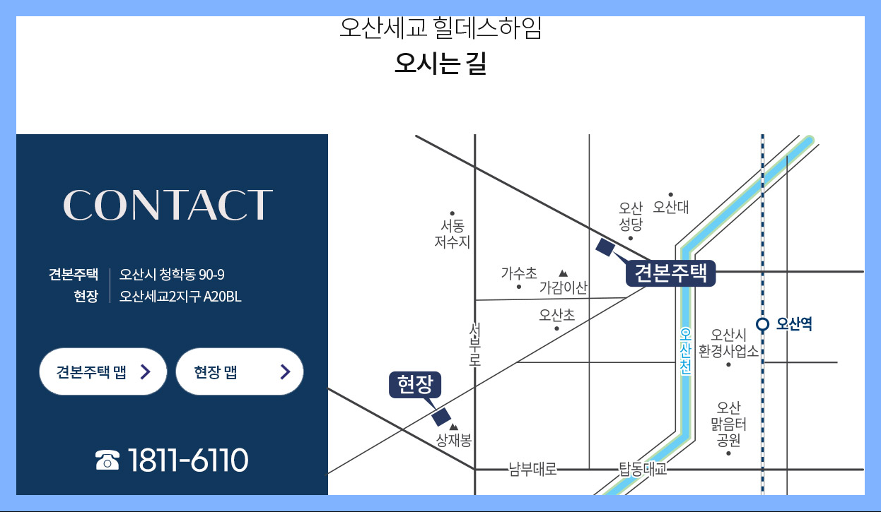 - 견본주택은 경기 오산시 청학동 90-9번지에 위치해 있습니다.