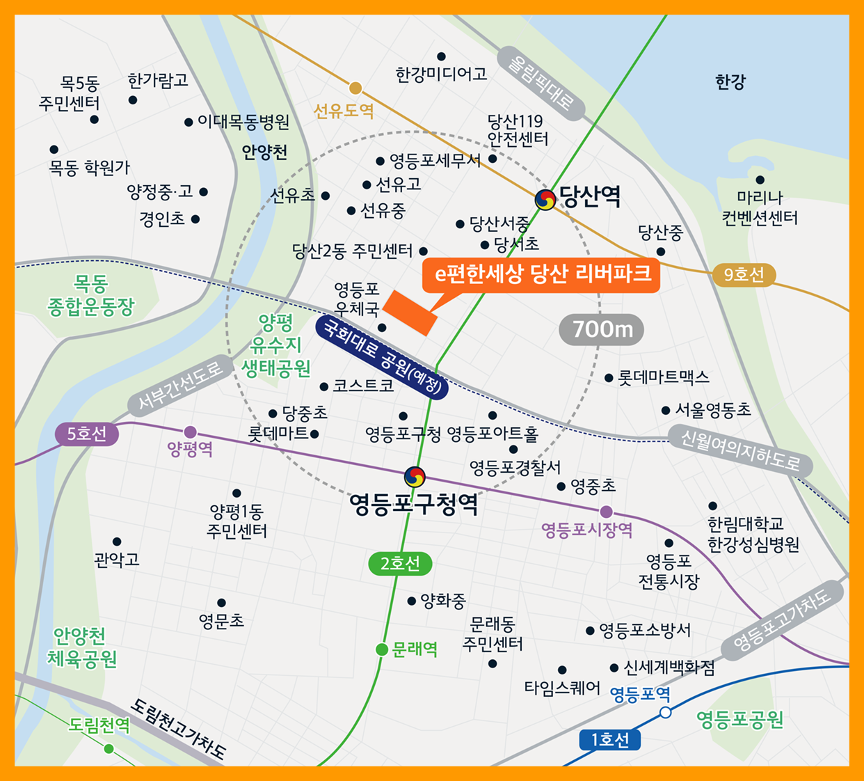 지하철 접근성: 영등포구청역(2·5호선)과 당산역(2·9호선)과 가까워, 강남과 여의도를 포함한 주요 도심으로의 접근성이 탁월합니다.